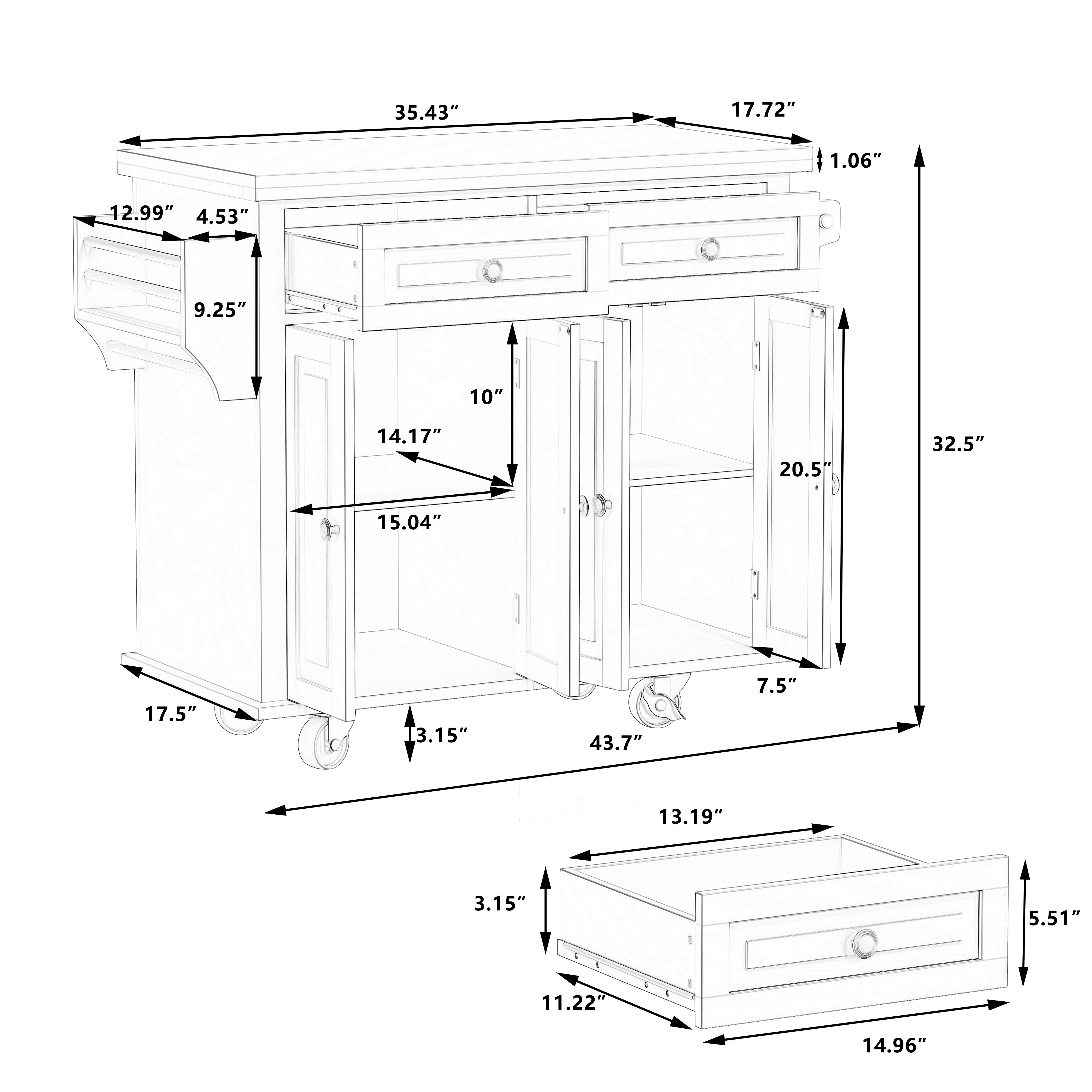 | Product Name | Kitchen Island Cart with Two Storage Cabinets and Two Locking Wheels,43.31 Inch Width,4 Door Cabinet and Two Drawers,Spice Rack, Towel Rack |