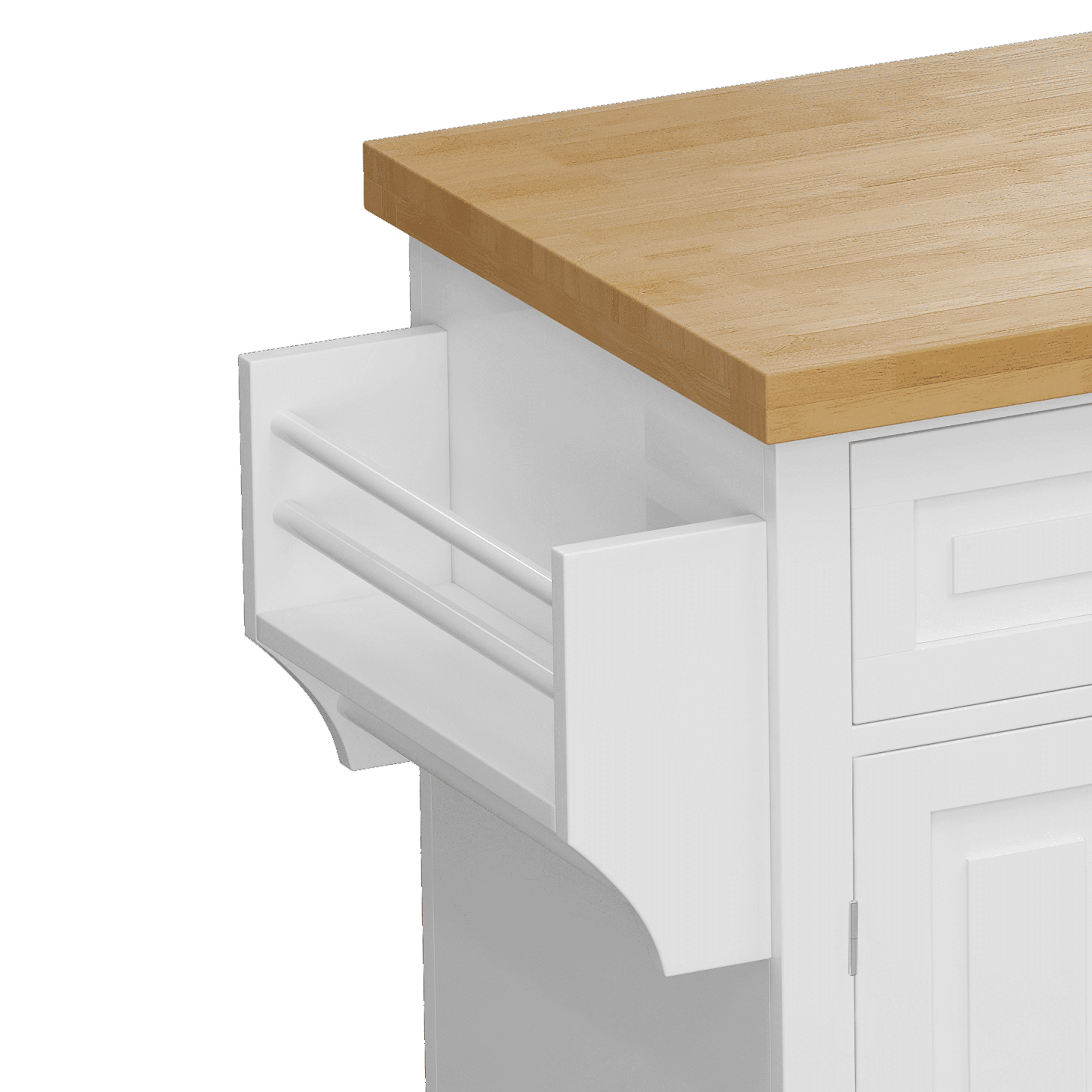 2.Materials:The kitchen island cart is made of high-quality solid wood tabletop and high-quality MDF, sturdy and durable, heat-resistant and moisture-proof, with a load-bearing capacity of up to 120lbs.