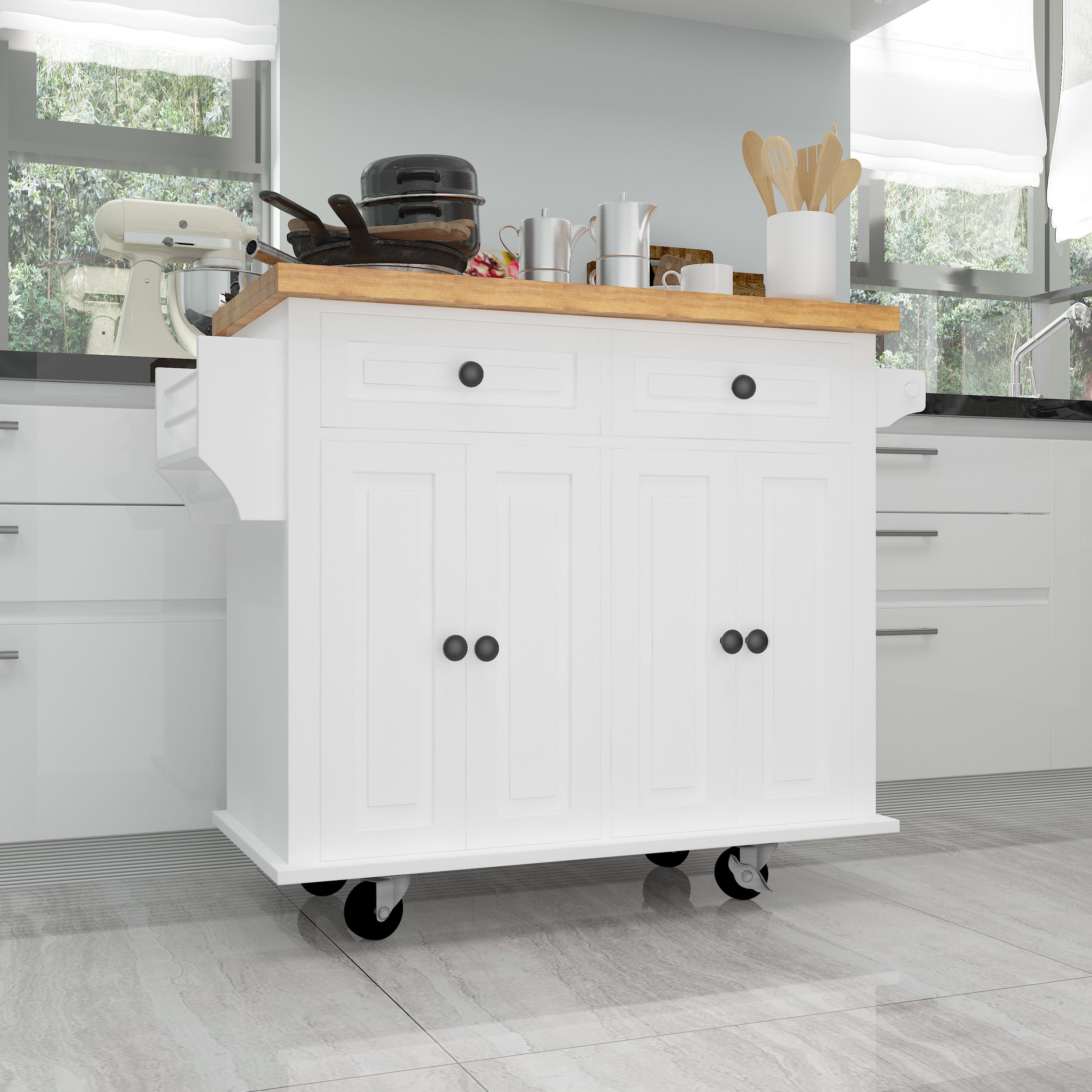 Kitchen Island Cart with Two Storage Cabinets and Two Locking Wheels,43.31 Inch Width,4 Door Cabinet and Two Drawers,Spice Rack, Towel Rack