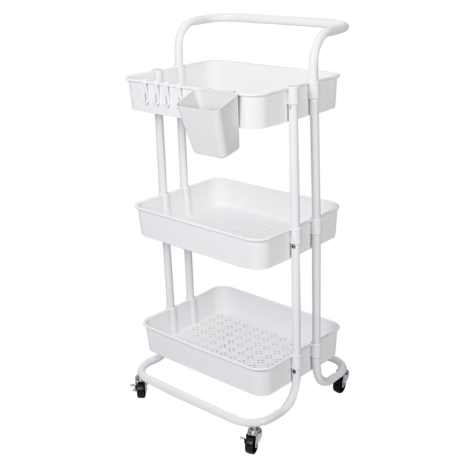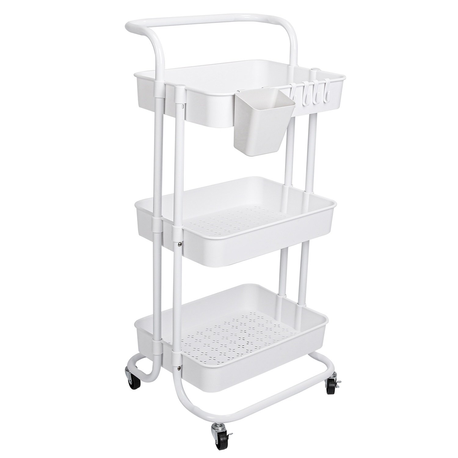Home > 3 Tier Rolling Utility Cart Movable Storage Organizer with Mesh Baskets Lockable Wheels 360 Degree Rotatable Hanging Box Hooks Bedroom Bathroom Kitche