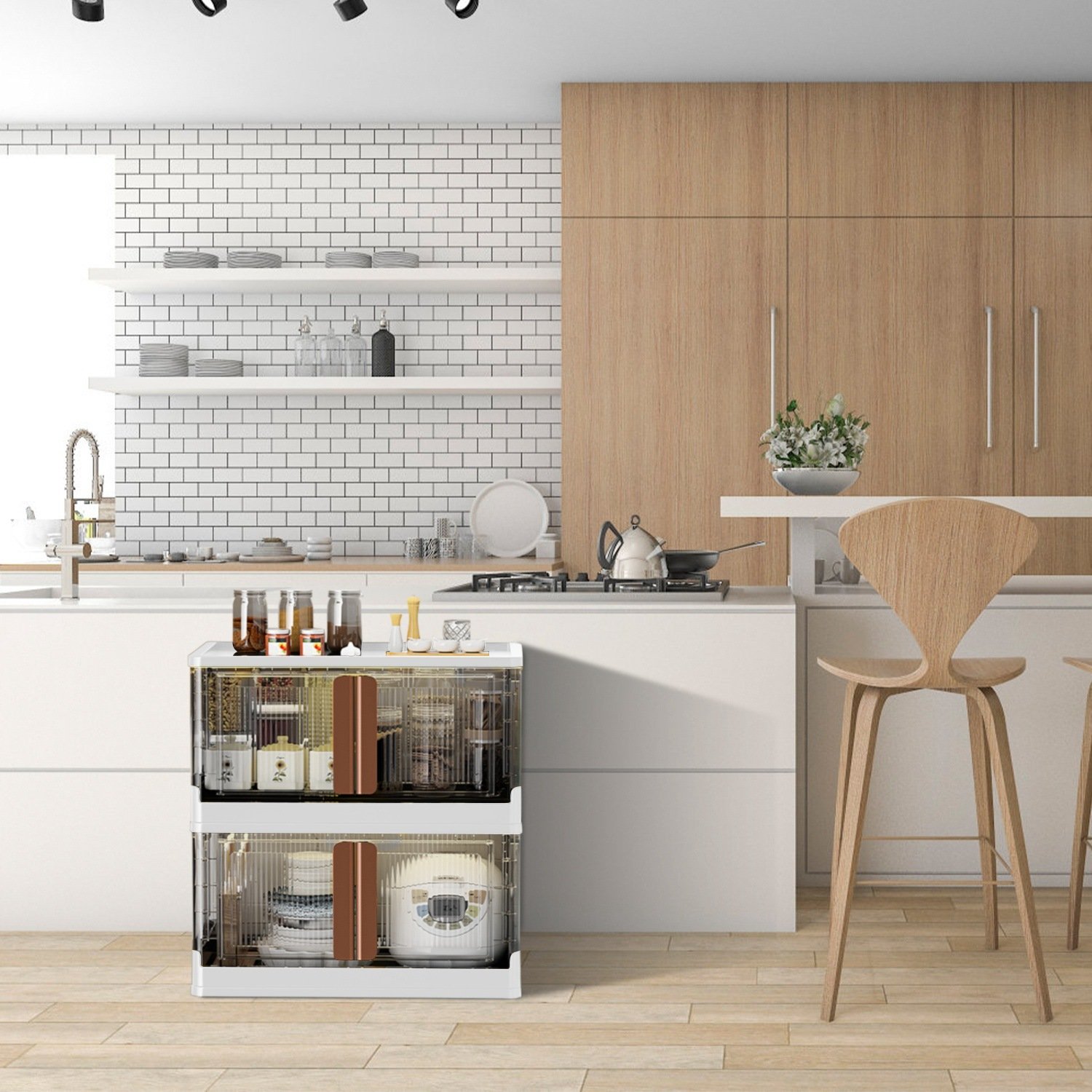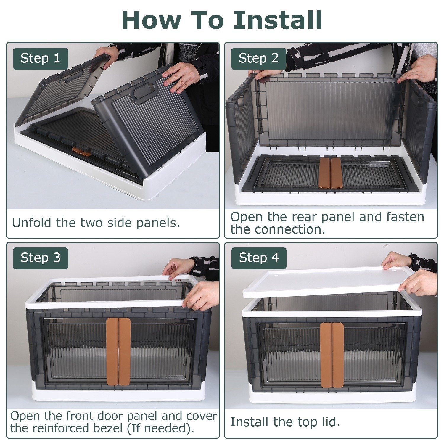 *Easily Fetch Items From Top & Front*:The folding storage organizer is able to open in two ways. You can open lid on the top or open from the front door. The front door built in lock buckles; rotating the handles in and out to control the doors lock and unlock; ensure the doors not open when moving this cabinet. The front door makes it easy to access to everything inside without having to pull everything down or removing the things on the top lid. Top cover keeps things from being exposed to dust.