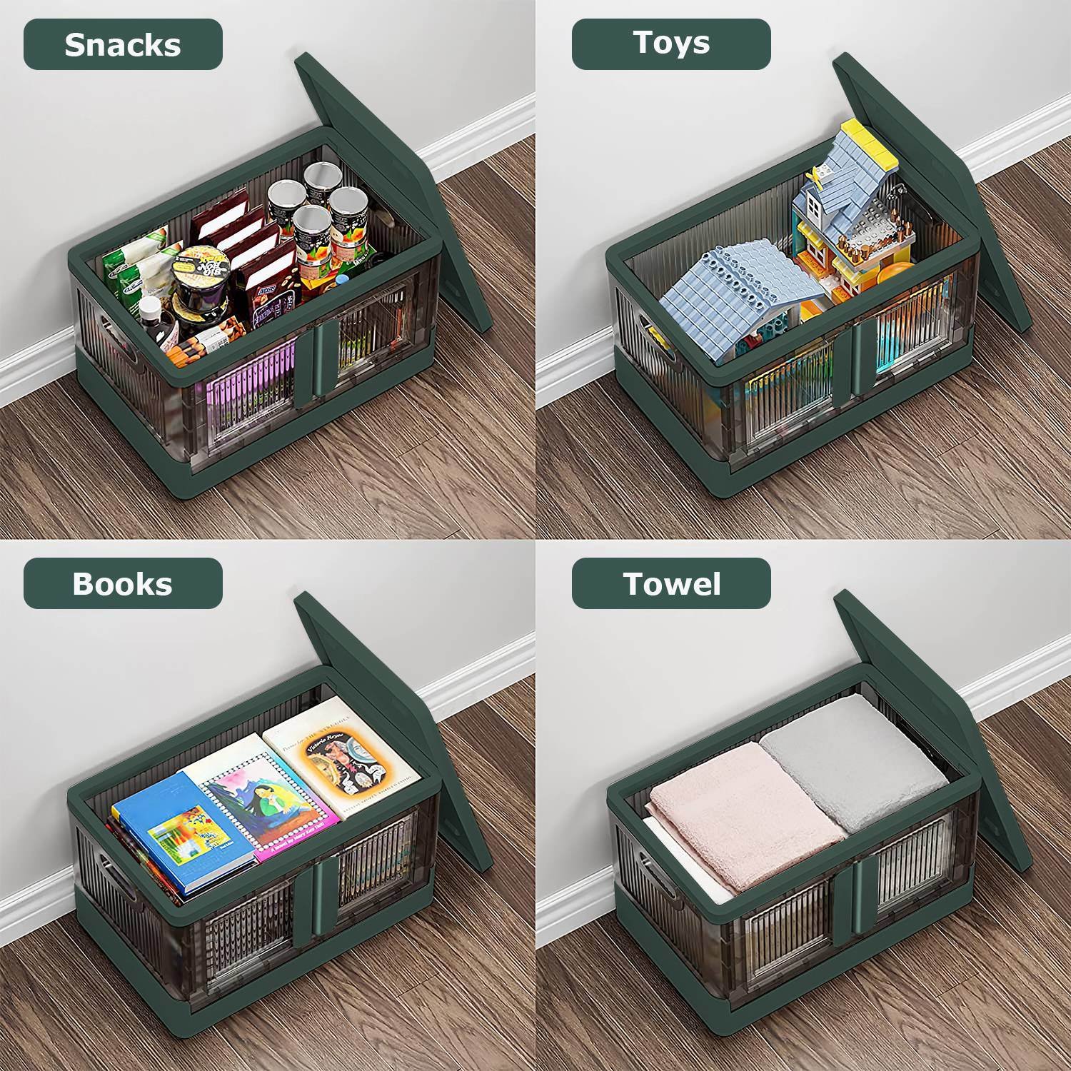 *Versatile Storage Bins*:The folding storage box is a versatile storage bins that can be used as bathroom organizer; kitchen organization; closet organizer; dog food storage container; food storage containers; laundry room organization; toy storage; car organizer; Christmas decorations clearance; bedroom storage; snack organizer; book bins; hat storage; and etc.. Our storage bin will render you much more tidy and space saving.