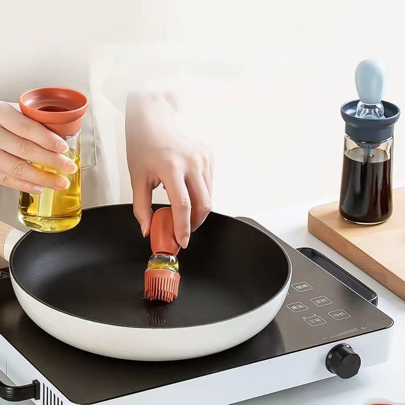 Home > 1pc Kitchen Oil Dispenser Bottle With Brush 2 In 1 Olive Oil Dispenser Bottle With Silicone Basting Brush And Dropper Glass Oil Bottle Convenient Cook